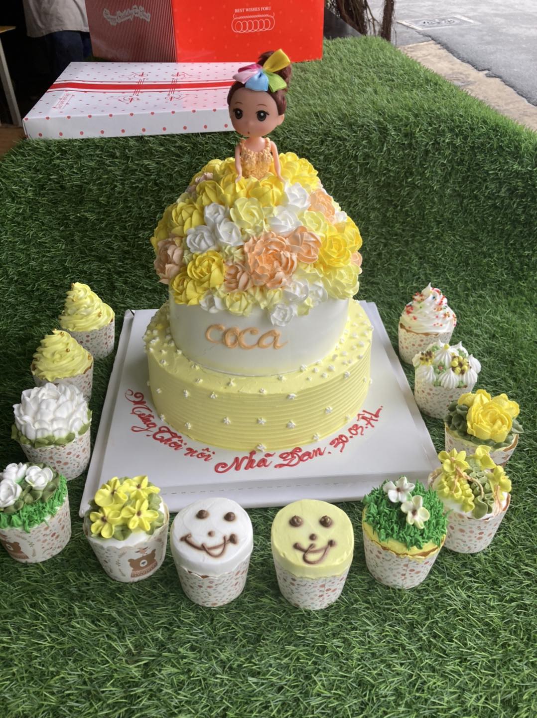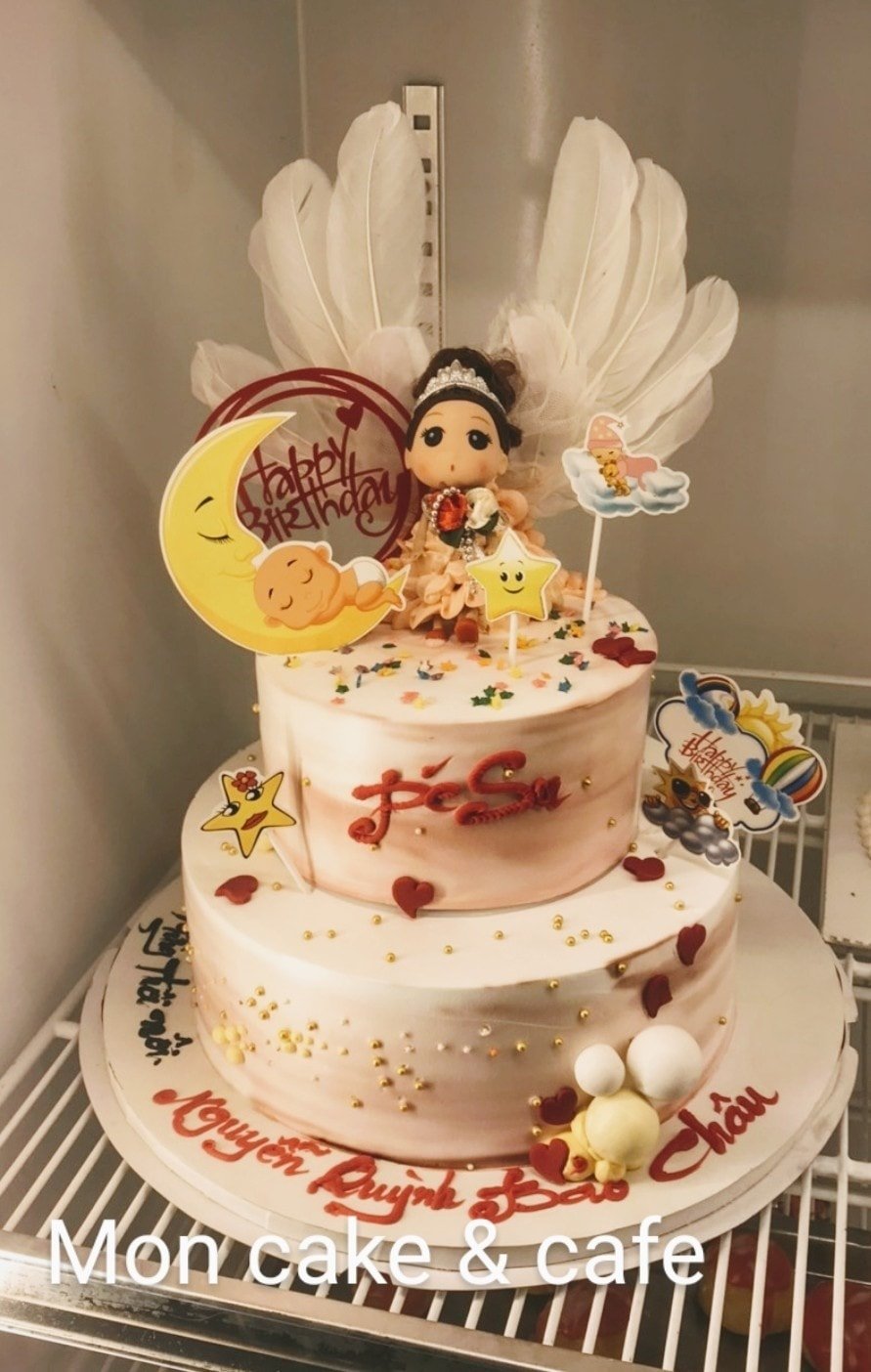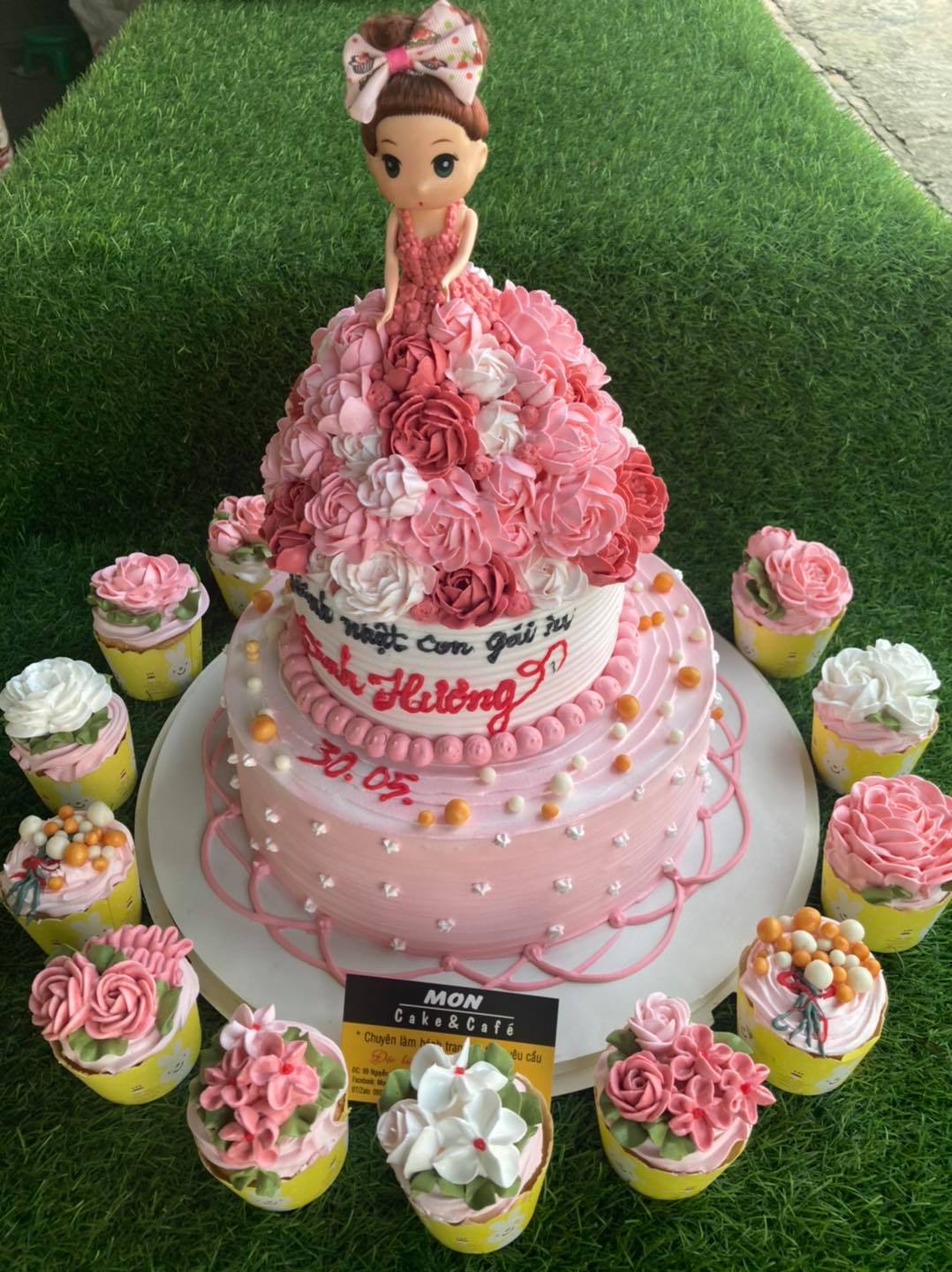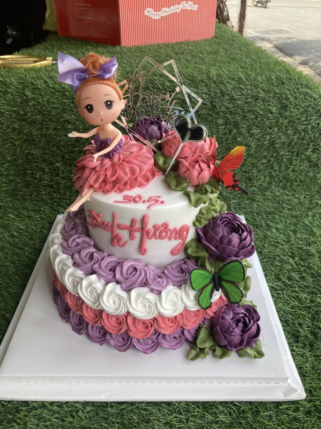 bánh búp bê 2 tâng phù hợp cho sinh nhật, thôi nôi cô công chúa nhỏ nhà bạn