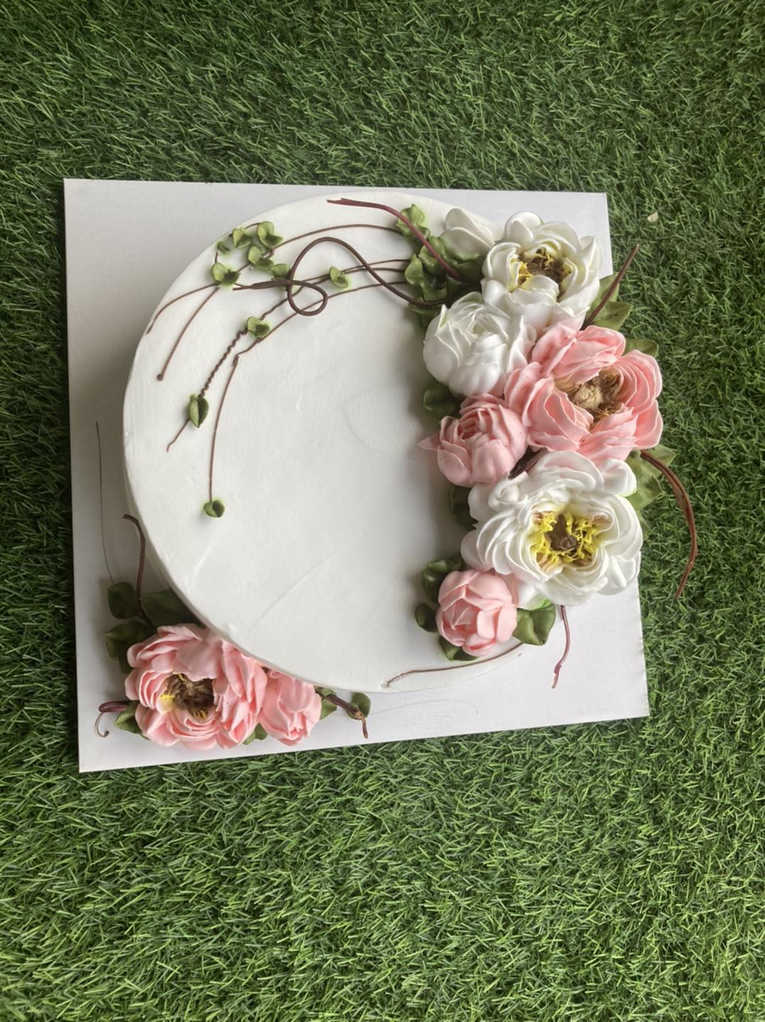bánh kem hoa được trang trí bắng hoa kem , hoa tươi vv.. tùy theo yêu cầu của khách hàng