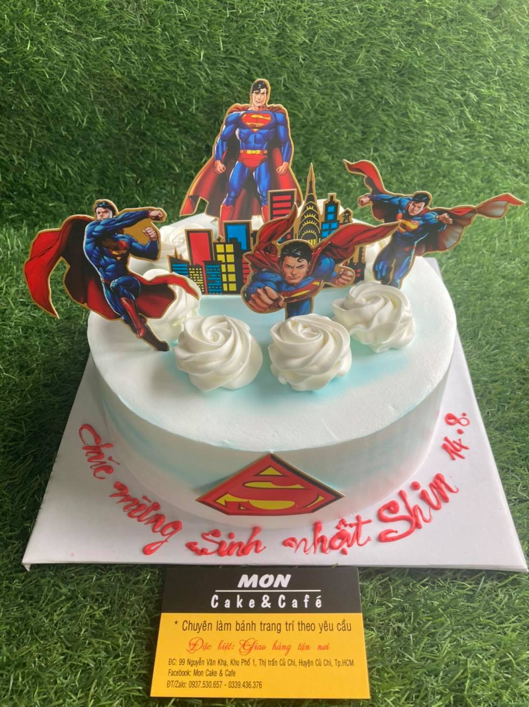 hơn nũa vói bánh kem siêu nhân tại Mon cake khách còn có thể lựa chọn vị bánh mà mình yêu thích như : nhân thơm(dứa )nho đen ,dâu,việt quất,sầu riêng vv...